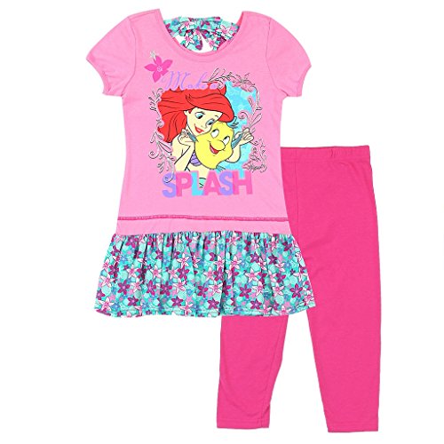 Make a splash with Ariel and Flounder from Disney's The Little Mermaid. Top is a bow-back style with coordinating bottom ruffle and light glitter accents. Top: 60% Cotton 40% Polyester Leggings: 56% Cotton 37% Polyester 7% Spandex. Machine washable. Imported.Feature