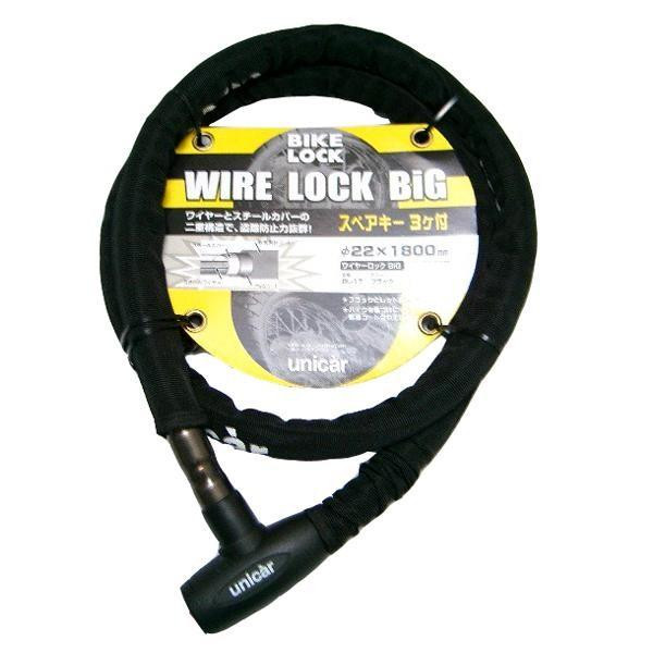 22mm径の極太ワイヤーにスチールカバーの2重構造で盗難防止力抜群!!愛車をしっかり守ります。 生産国:中国 商品サイズ:φ22×1800mm 仕様:鍵穴シャッターカバー付 付属品:スペアキー3本 ※サプライヤー直送品 ご注文後3~4営業日後の出荷となります【商品名】ユニカー工業 ワイヤーロックビック 22×1800 ブラック BL-17