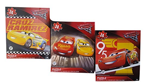 -. Feature : Pixar Cars3- Lightning McQueen and Cruz Ramirez 3 Puzzle Pack Set (24 Piece Each) / INCLUDED 3 puzzle (9.1" x 10.3") / Featuring your favorite Pixar Car 3 characters with Beautiful full color graphics / These 72 piece puzzles are just enough pieces to keep your child busy / Ages 5 years and up