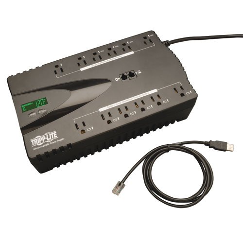 Tripp Lite 850VA UPS Battery Backup, LCD, 425W Eco Green, USB, RJ11, 12 Outlets (ECO850LCD)