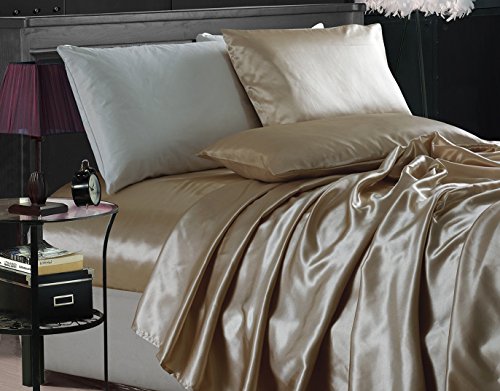 Chezmoi Collection 4-piece Bridal Satin Solid Color Sheet Set (Queen, Champagne)
