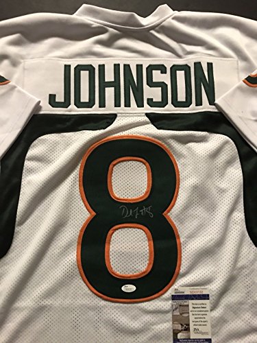 Autographed/Signed Duke Johnson Jr. Miami Hurricanes White Football Jersey JSA COA