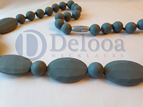 Delooa™ 15 COLORS Silicone Baby Teething Nursing Necklace BPA Free Better Than Baltic Amber Best Teething toy for baby! (Dimgrey)