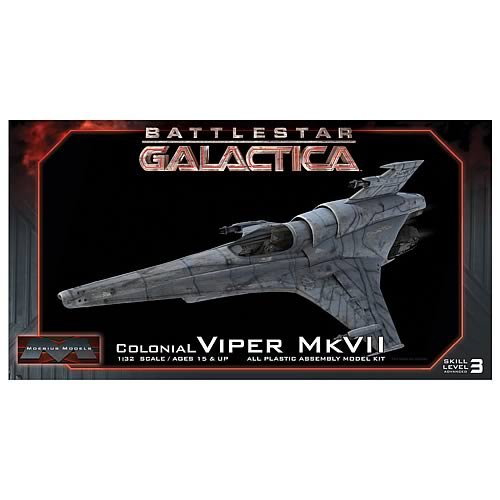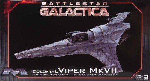 Studio : Moebius Models Publisher : Moebius Models Binding : Toy Product Description Capable of atmospheric flight, the Mark VII is the front-line variant of the Viper design, retaining the Mark II's general layout but adding fully integrated avionics that provide superior battle management and flight information for the pilot. Ironically, it is this incorporation of new integrated systems that prevents the majority of Mark VIIs from being effective during the Cylon attack: as with the majority of Colonial Fleet, the Mark VIIs suffer fatal computer system failures on contact with Cylon forces. This all-plastic assembly kit requires glue and paint for finishing and is compatible, at 1/32nd-scale, with previous BSG kit releases. Full color decals, landing gear, pilot figure, and display stand included. 0