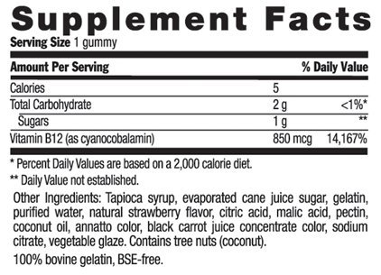 Yummy healthy goodness! Easy to chew and delicious flavor, Vitamin B12 helps convert carbohydrates, fats and proteins into energy, as well as plays a key role in the function of the nervous system. B12 is essential for the production of red blood cells, which help to deliver oxygen to the body.
