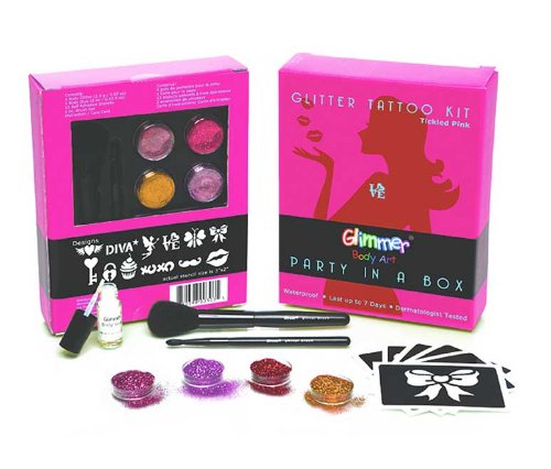 -. Title : Glimmer Body Art Party in a Box Waterproof Glitter Tattoo Kit-Tickled Pink