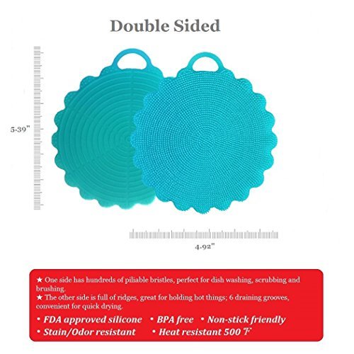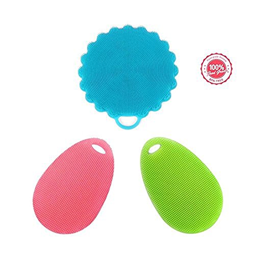 Mondora Garden 3 Pieces Multifunctional Non-Stick Antibacterial Silicone Dish Brush Vegetable Fruit Scrubber Heat Resistant Mat