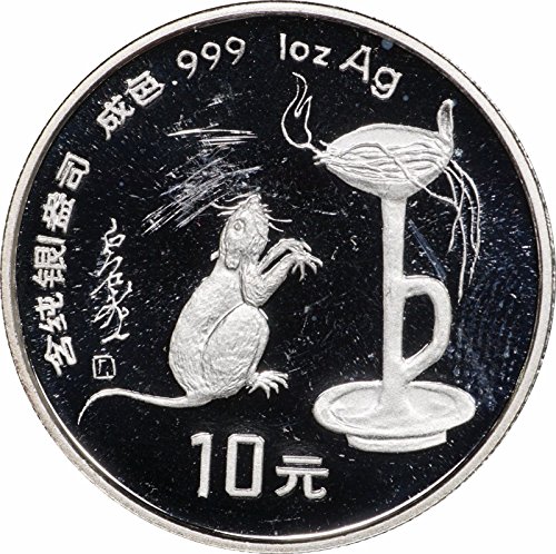 1996 CN Proof 10 Yuan Year of the Rat Piedfort Silver Abrasions in Field 1 oz Proof