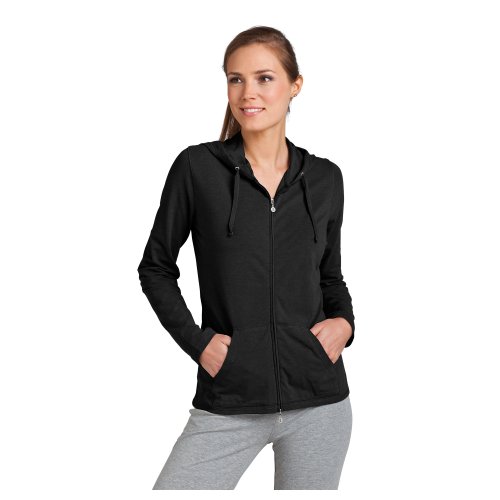 Separating zipper opens from either end to easily sit over hips or hang loose at neck