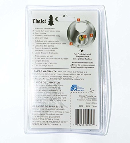 Chalet Disk Padlock - Round Padlock with Shielded Shackle, 2-3/4-inch, Stainless Steel