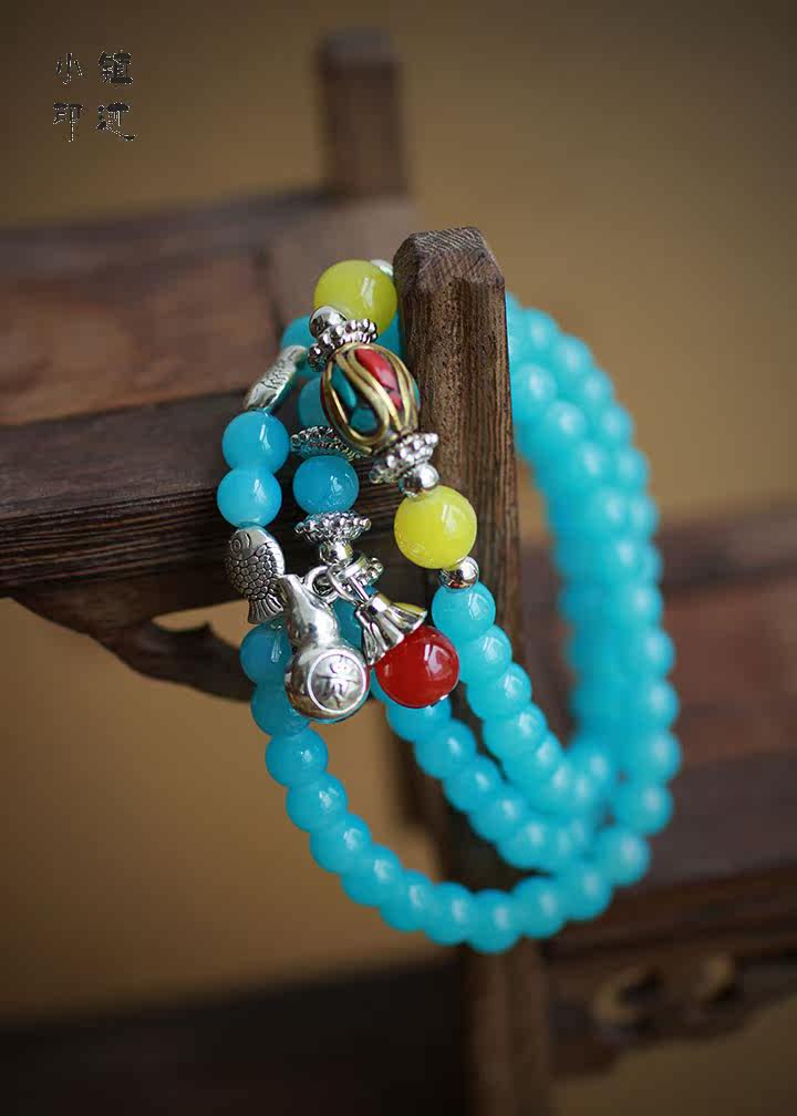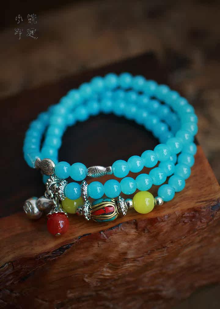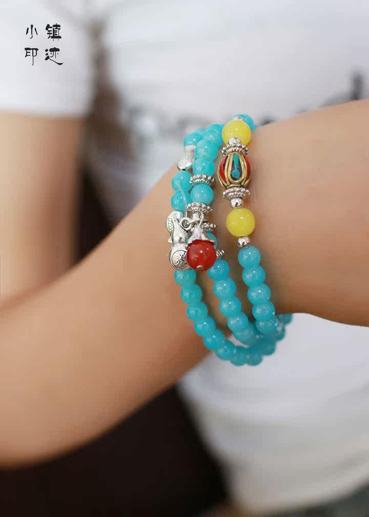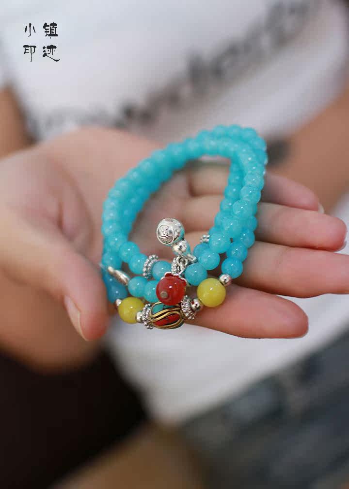 Aquamarine bracelet purse multilayer