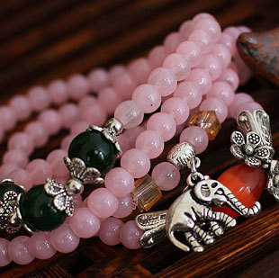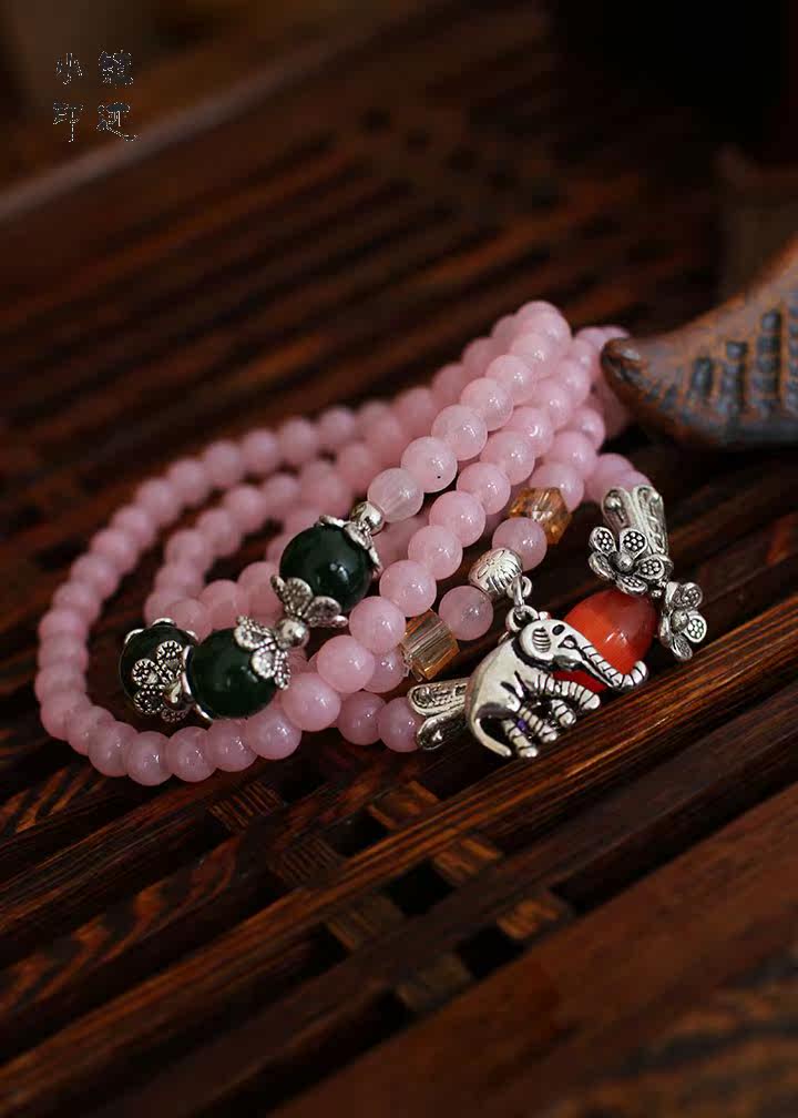 Rose Quartz Bracelet elephant multilayer