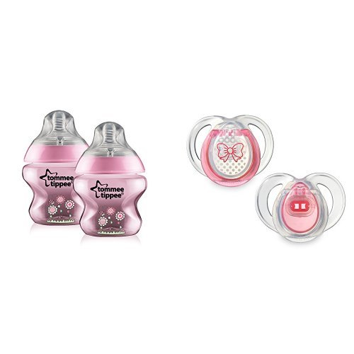 -. Title : Tommee Tippee Closer to Nature Decorated Bottle, Pink, 5 Ounce (Pack of 2) with Closer To Nature Everyday Pacifier, Pink, 0-6 Months, 2 Count