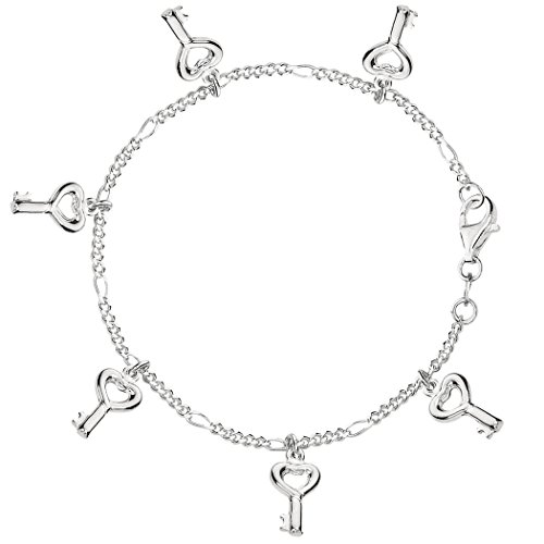 -. Title : Dangling Keys Figaro Chain Anklet In Sterling Silver