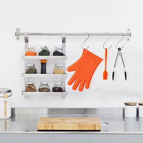 - 【Heat Resistant Silicone Gloves】The BBQ grill oven/cooking gloves can withstand high temperature up to 425°F with non-slip surface, water proof, stain resistant, them suit most man or woman and enough long to prevent the sleeve from getting dirty, the golves also can be hung