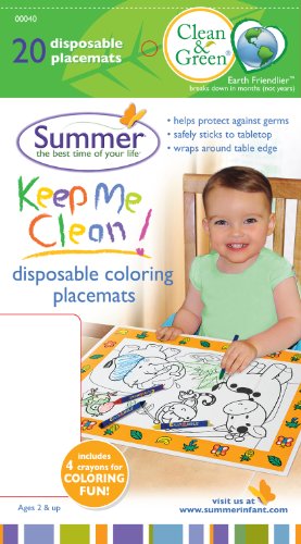 -. Title : Summer Infant Clean & Green Disposable Colouring Placemats 20 pk