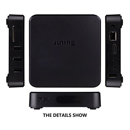 Studio : JUNING Publisher : JUNING Binding : Electronics Product Description Hardware Specifications: SDRAM:1GB DDR3 Power Supply:DC 5V/2A CPU: RK3229 Quad-Core Cortex-A7 1.5GHz GPU:Quad-Core Mali-450@600MHz FLASH:8GB NAND FLASH Power Indicator (LED):Power ON :blue; Standby :Red OS: Android 5.1 3D:Hardward 3D graphics acceleration Support Decoder format:HD MPEG1/2/4,H.265, HD AVC/VC1,RM/RMVB,Xvid/DivX3/4/5/6 RealVideo8/9/10 Support Media format:Avi/Rm/Rmvb/Ts/Vob/Mkv/Mov/ISO/wmv/asf/flv/dat/mpg/mpeg Support Music format:MP3/WMA/AAC/WAV/OGG/AC3/DDP/TrueHD/DTS/DTS/HD/FLAC/APE Support Photo format: HD JPEG/BMP/GIF/PNG/TIFF USB host: 4 High speed USB 2.0,support U DISK and USB HDD Card reader: SD/SDHC/MMC cards HDD file system: FAT16/FAT32/NTFS Support Subtitle: SRT/SMI/SUB/SSA/IDX USB OSD type of languages: English/French/German/Spanish/Italian/ etc multilateral languages LAN: Ethernet:10/100M, standard RJ-45 Wireless: Built in WiFi HDMI: HDMI 1.4b with CEC AV: Support SPDIF/IEC958: Coaxial