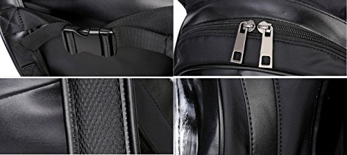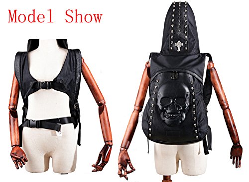 -. Feature : Sturdy PU leather + polyester / Studded Skulls and cross decoration / Adjustable padded shoulder strap for easy and comfortable carrying / Size:13.4"L x 4.3"W x 16.9"H / New fashion trends, cool design will catch everyone's eyes