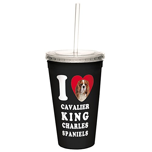 Tree-Free Greetings CC35029 I Heart Cavalier King Charles Spaniels Artful Traveler Double-Walled Cool Cup with Reusable Straw, 16-Ounce