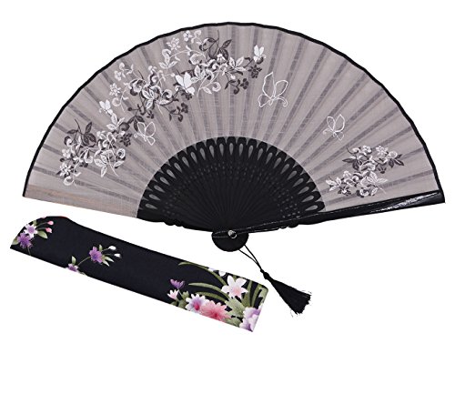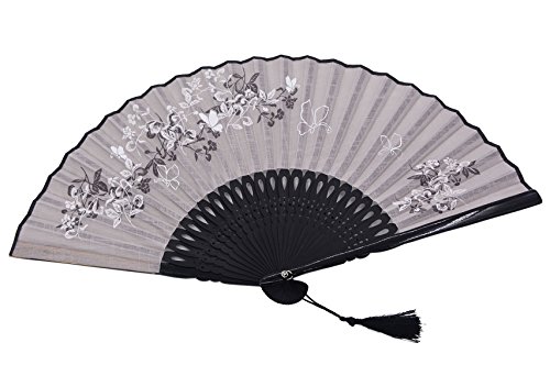Meifan Womens Fashion elegant Chinese/Japanese Silk Handheld Folding FanHand Held FMZ (GrayPurple)
