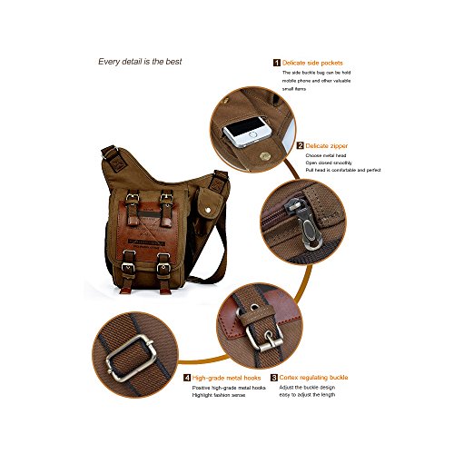 -. Brand : Camping Family -. ClothingSize : one size -. Color : Coffee -. Department : mens -. EAN : 0757290679392 -. Feature : *SHOW YOUR STYLE WITH HIGH DURABILITY* - retro, vintage style with special leather patchwork to show your own style; tear-resistant and breathable canvas material along with unique washing process insures a lifetime of use and brings good hand feel, uneasy to deform, fade or shrink. / *KEEP YOUR BELONGING ORGANIZED* - comes with enough pockets and capacity to organize your basic survival gear or school and daily necessities, as well as to conveniently carry the stuff you have to access regularly, like cellphone, external charger, cords, headphones, sunglasses, credit cards, cash, mints, snacks, water bottle and so on. / *ADJUSTABLE SHOULDER STRAP* - you can freely adjust the shoulder strap according to your height and comfort requirements. / *SLAP-UP HARDWARE FOR EASY ACCESS* - smooth, durable and exquisite zippers & magnetic snaps ensure instant access to what you want and high security to protect your property. / *A MUST HAVE & IDEAL GIFT FOR YOU* - a practical messenger bag/shoulder bag/chest bag/leg bag nicely suitable for office, school, outdoor, business and other occasions; also an ideal gift for birthday, thanksgiving, Christmas, anniversary. -. MPN : Cam3012 -. PartNumber : Cam3012 -. ProductGroup : PC Accessory -. ProductTypeName : APPAREL -. Size : one size -. Title : Camping Family Vintage Retro Canvas Shoulder Military Sling School Bags Chest Pack Bag Military Leather Patchwork Cross-Body Messenger Bag Bicycle Bag Coffee -. UPC : 757290679392