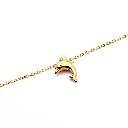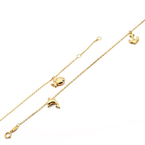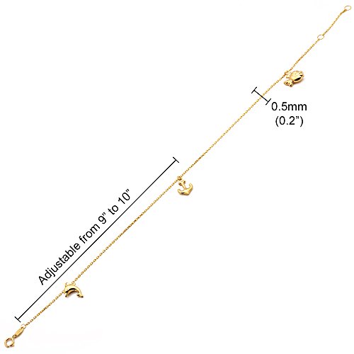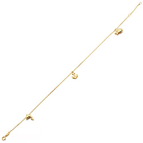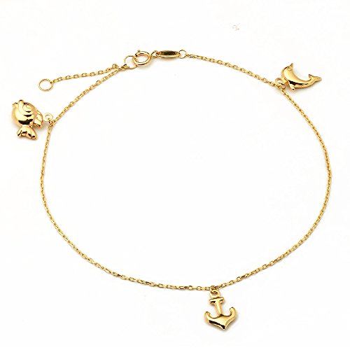 -. Title : LoveBling 10K Yellow Gold .50mm Diamond Cut Rolo Chain w/ Dolphin, Anchor, Fish pendants Anklet Adjustable 9" to 10"