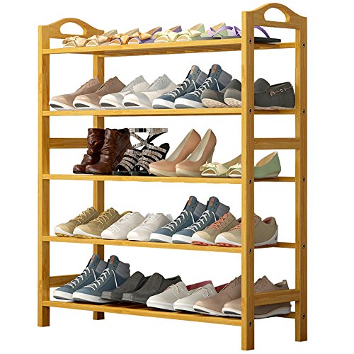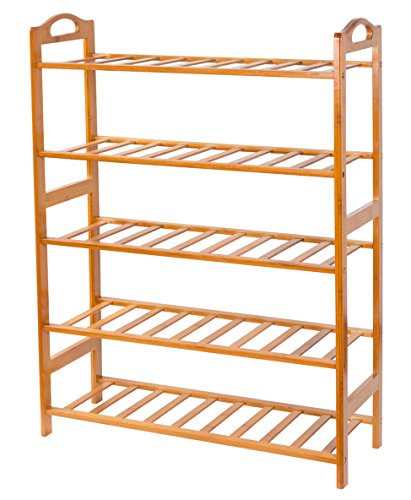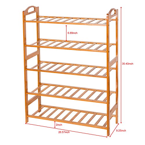 HollyHOME 5-Tier Bamboo Shoe Rack Shoe Tower Entryway Shoe Holder Storage Organizer