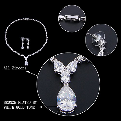 -. Binding : Jewelry -. Brand : EVER FAITH -. Department : womens -. Feature : [!]EVER FAITH® is a US registered trademark and Ever Faith Jewelry is its only owner. / Cubic zirconias are pronged to the jewelry item to secure from loosing. A prong setting is one component of what is known in the jewelry business as a head, a claw-shaped type of binding (typically 3, 4, or 6 individual prongs per head) that is welded or soldered to a jewelry item in order to mount (or set) a stone to the jewelry item. / Necklace Length: 42cm(16.5"). Attachment Size:20cm(7.9") by 3cm(1.2") Earring Size: 0.7cm(0.3") by 3.2cm(1.2"). One Earring Weight: 3g. Necklace Weight: 24g. / Brass Metal is much smoother and will protect your skin from rubbing. You will feel comfortable when wearing it. Also, jewelry made by brass metal has light weight. / Wrapping: Come with a gift box and a favor bag. If you need assistance please contact us. -. Label : EVER FAITH -. Manufacturer : EVER FAITH -. Model : N06991-1 -. MPN : N06991-1 -. PartNumber : N06991-1 -. ProductGroup : Jewelry -. ProductTypeName : FASHIONOTHER -. Publisher : EVER FAITH -. Studio : EVER FAITH -. Title : EVER FAITH Silver-Tone Cubic Zirconia Charming Water Drop Bridal Pendant Necklace Earrings Set Clear
