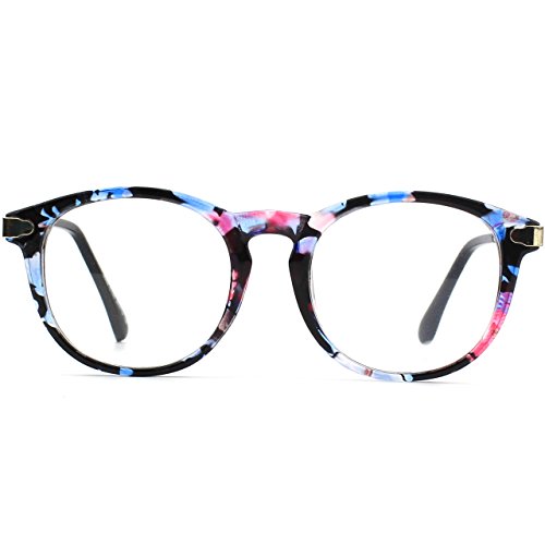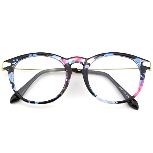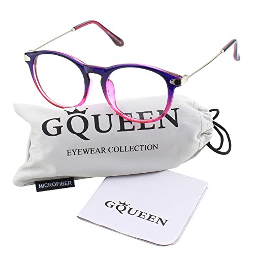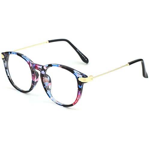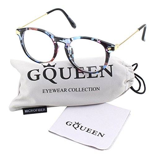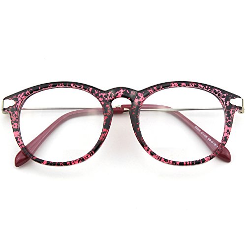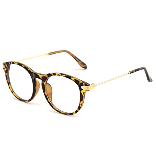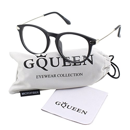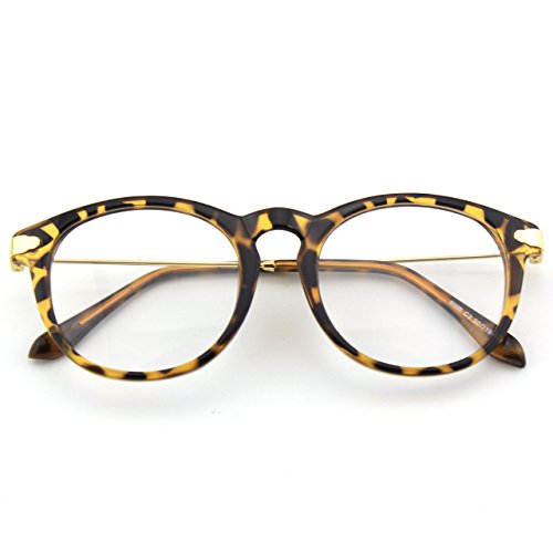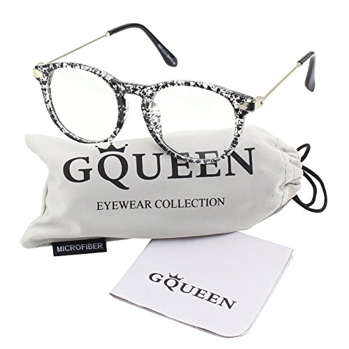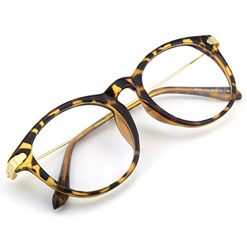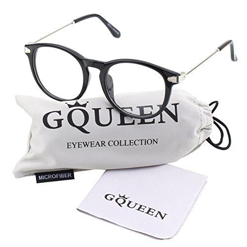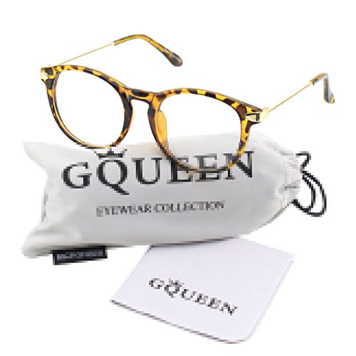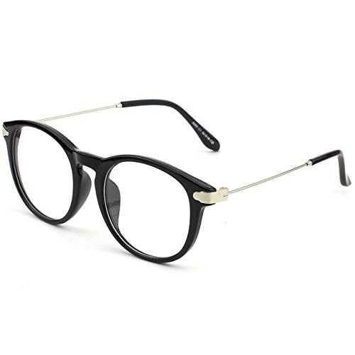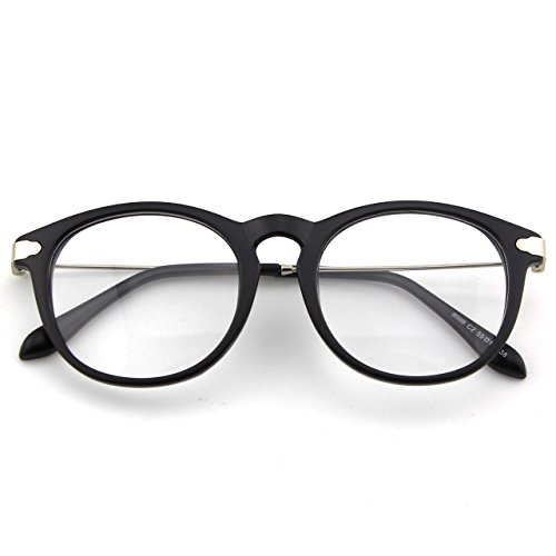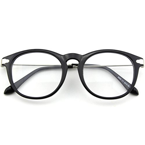 | Glasses Queen 201588 Fashion Horn Rimmed Keyhole Metal Temple Clear Lens Glasses |