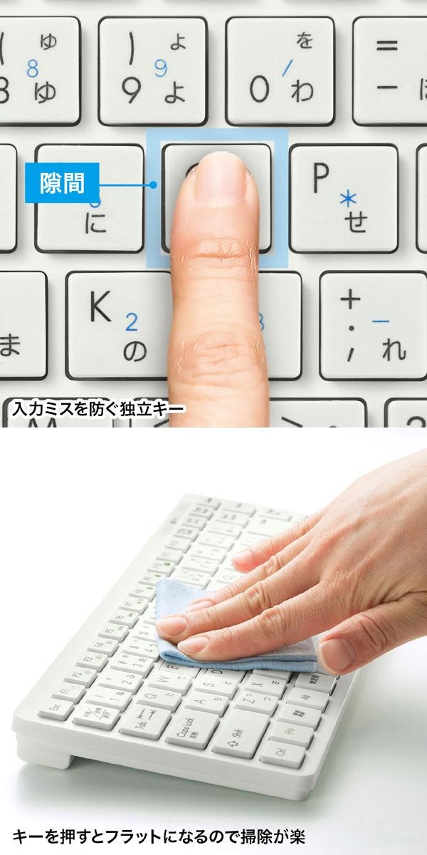 | 誤入力を減らすアイソレーションタイプのワイヤレスキーボード。 |