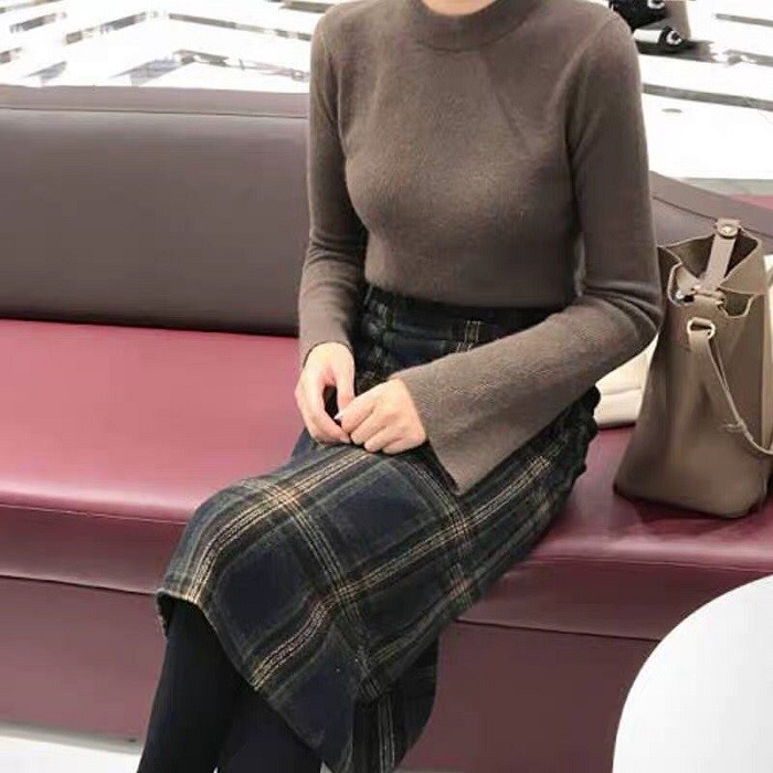 レディース スカート グレンチェック柄 膝丈 ミモレ丈 Aラインスカート 秋冬