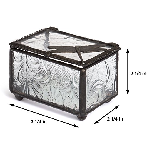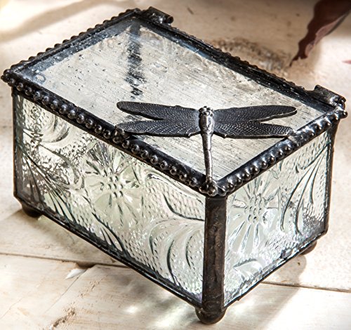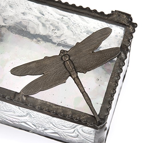 J Devlin Box 291 Dragonfly Collectible Trinket Box Botanical Textured Glass Keepsake Box