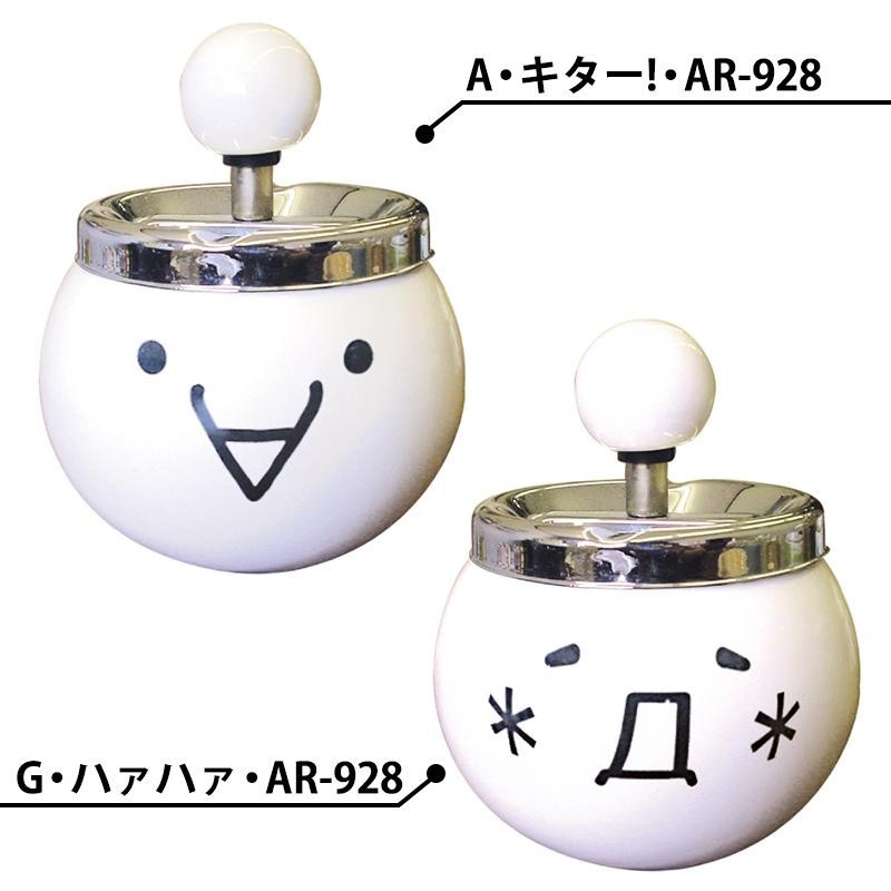 fk094igrjs上からハンドルを押すと、回転しながら下がり、灰や吸殻を自動的に中に落とす事が可能です サイズ H150×Φ119mm 個装サイズ:16×13×13cm 重量 個装重量:420g 素材・材質 陶器、スチール 製造国 中国 かわいい顔文字くんの灰皿です 上からハンドルを押すと、回転しながら下がり、灰や吸殻を自動的に中に落とす事が可能です
