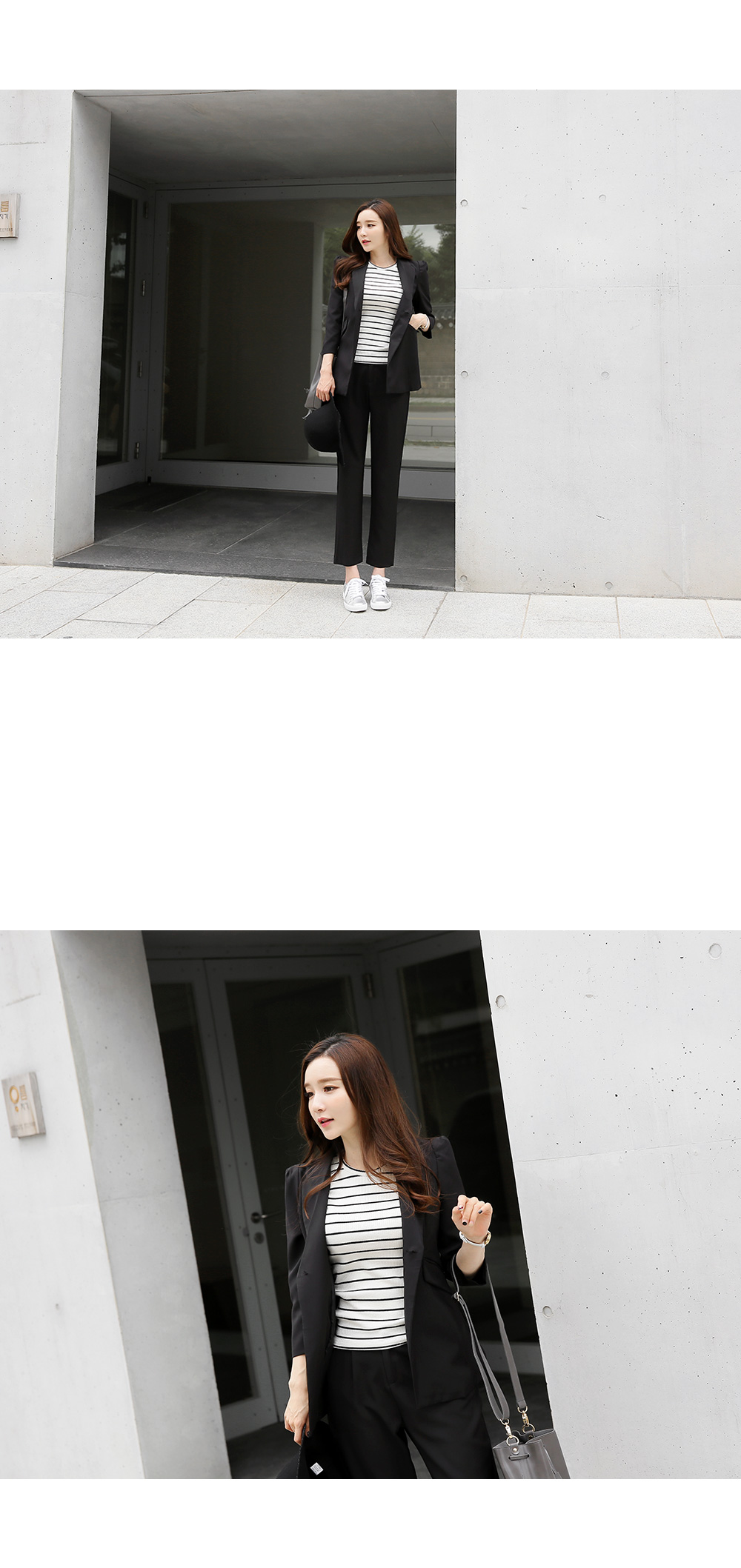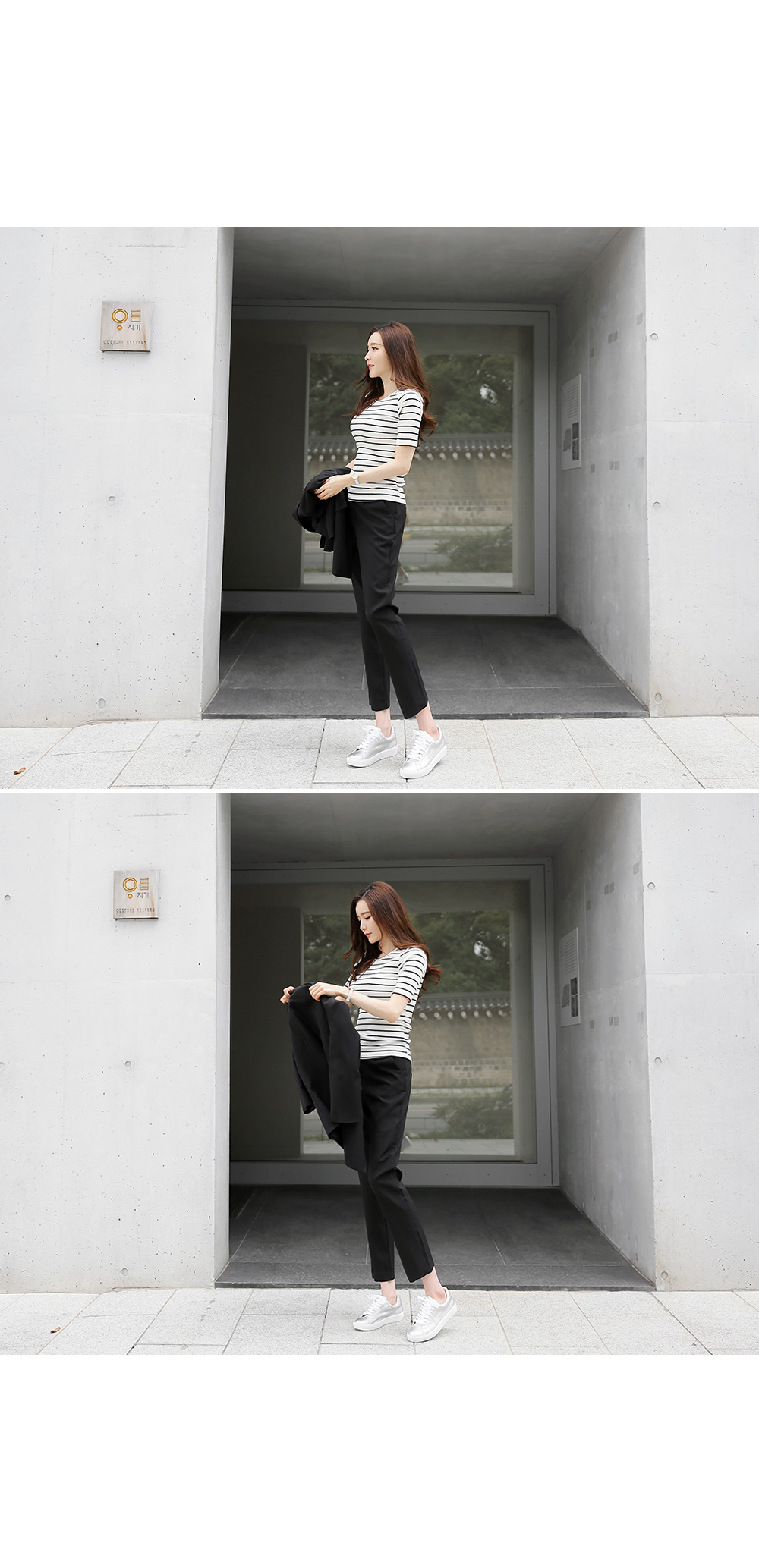 안정감있는 핏을 잡아주는 베이직 아이템이구요,