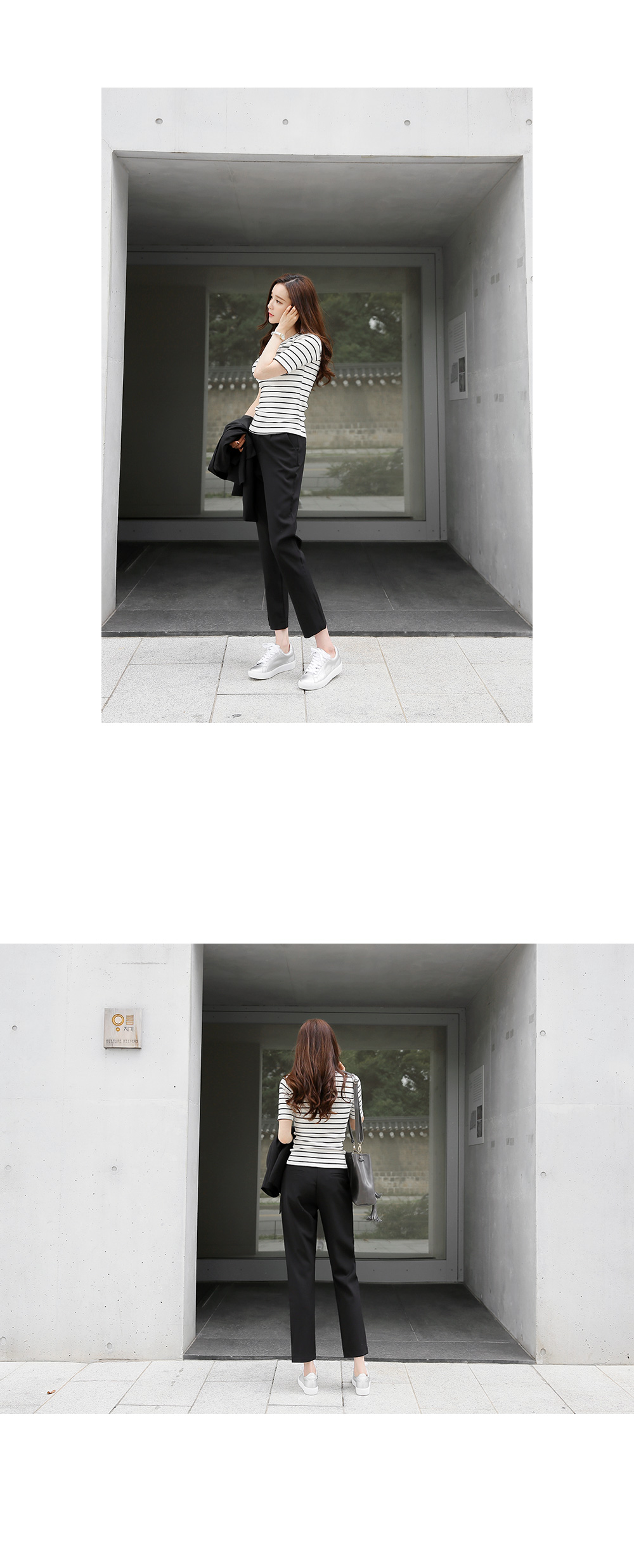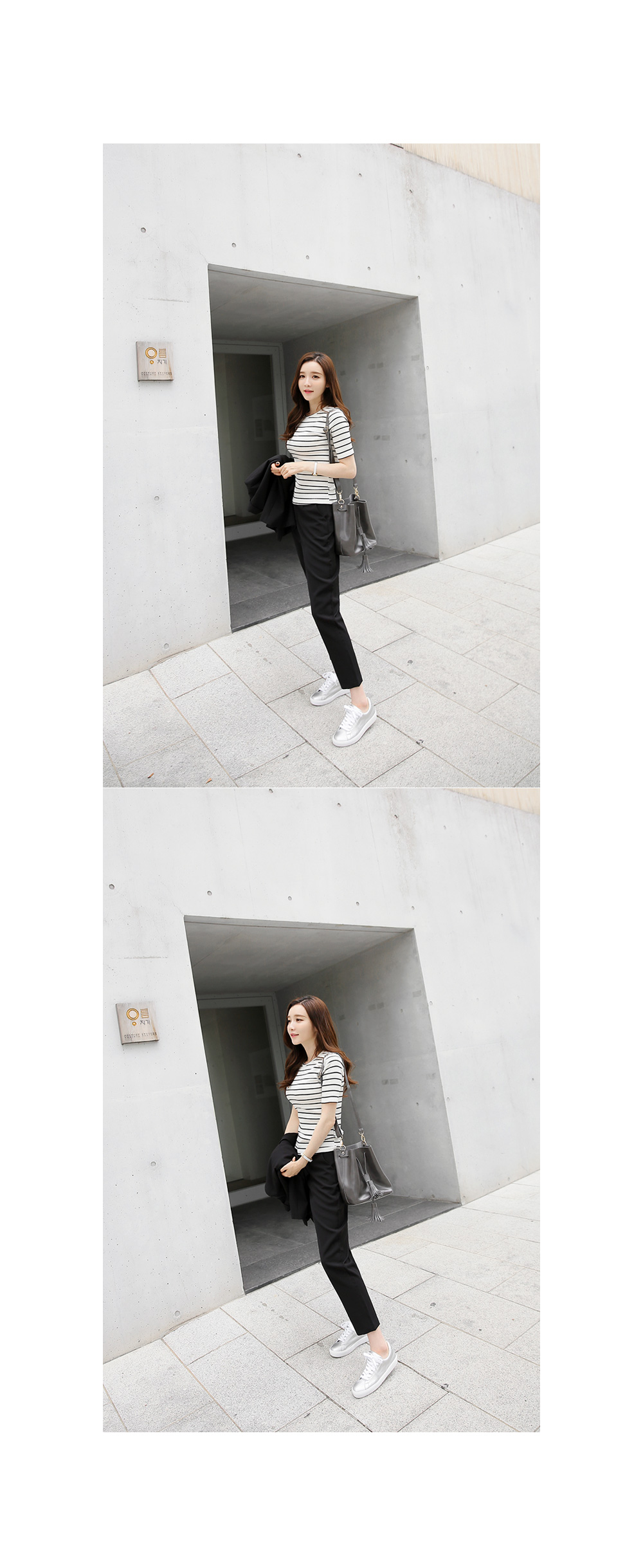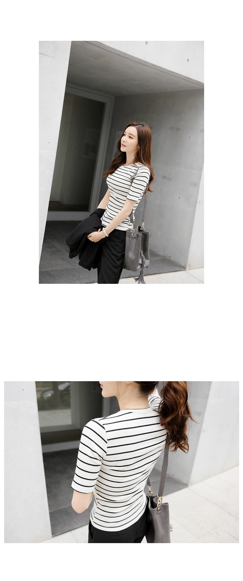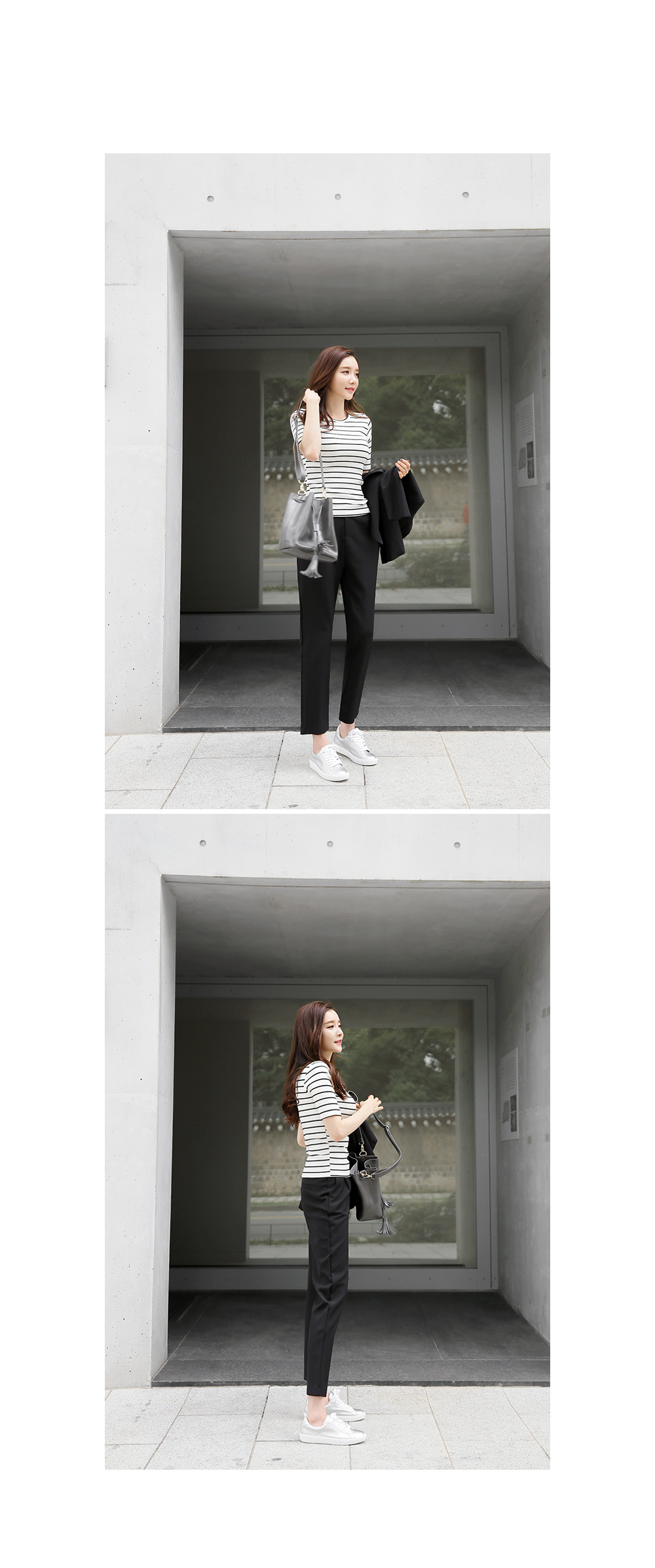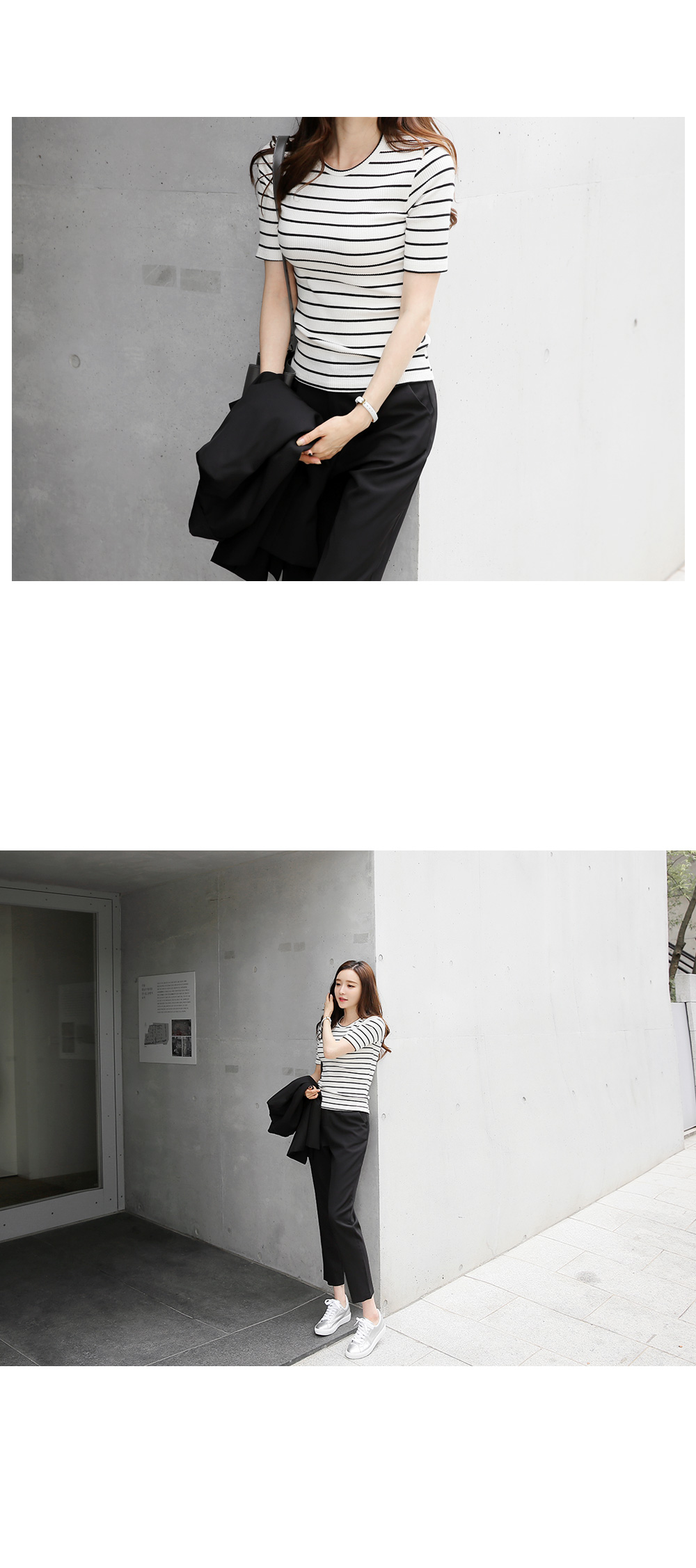 심플한 스트라이프 패턴이 다양한 룩에