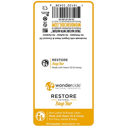 Restore honey bar soap contains organic cold-pressed neem oil, organic neem leaf extract, fresh organic Aloe vera gel and organic honey. Honey is a natural humectant, which means it attracts and retains moisture in the skin. It's also an anti-irritant, making it suitable for sensitive skin and baby products. Honey has no additives or preservatives - it's one of the few ingredients that can be used straight from nature. The Restore honey bar soap is a beneficial cleanser for sensitive skin and moisturizes dry skin. Aloe vera and honey used as part of a skin treatment regimen keeps the skin healthy and glowing with gentle cleaning, conditioning, and moisture retention. All our natural soap bars are carefully handcrafted in small batches from fragrant coconut oil and therapeutic-grade essential oils. The result is a hand and body bar that's luxurious, long-lasting, mild, and deliciously scented to repel insects. It protects, nourishes and moisturizes even the most sensitive skin. Repel is biodegradable and easy for people to use camping, hiking, or before spending time outdoors. We only source fair-trade ingredients of the highest quality to help you protect the ones you love. Soothes itching, scratching, dryness & damaged skin - Antibacterial & antifungal protection - Biodegradable, eco-friendly, paraben-free, sulfate-free, gluten-free, alcohol-free Made with therapeutic-grade essential oils Ingredients: Coconut oil, palm oil, shea butter, castor oil, neem oil, citronella oil, geranium oil, neem leaf extract, Aloe vera, vitamin E, honey.Feature