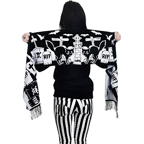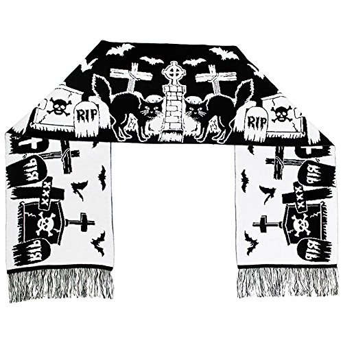 Studio : Too Fast Apparel Publisher : Too Fast Apparel Binding : Apparel Product Description Graveyard Halloween Scene Large Knit Scarf Women's By Too Fast Apparel. Tip toe past the tombstones with black cats bats in our graveyard scarf. These scarves are extra long and wide for maximum warmth coziness. Approx. 70" long x 11.5" wide. 100% Cotton. 0