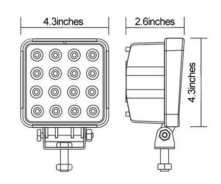 Kawell K2-2148 48W 60 Degree 4.3-Inch Square LED Flood Light with Mounting Brackets Kit, Pack of 2