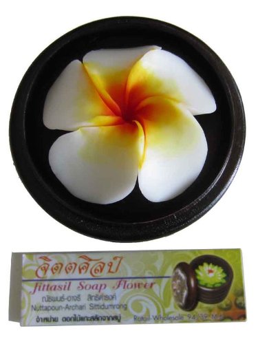 Jittasil Thai Hand-Carved Soap Flower, 4 Inch Scented Soap Carving Gift-Set, Plumeria In Decorative Wood Case