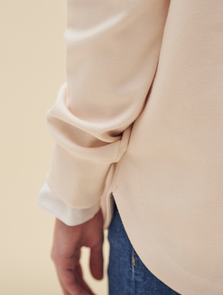 - 드롭 숄더에 여유있는 실루엣으로 편하게 매치할 수 있는 아이템입니다.