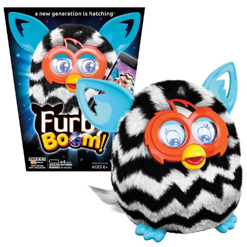 -. Binding : Toy -. Brand : Furby -. EAN : 0847302038382 -. Feature : Collect and hatch virtual Furblings to fill your city in the Furby Boom app, and try to get the golden Furblings egg / You can hatch and raise virtual Furblings with your Furby Boom, and play games together using the free Furby Boom app / Give Your Furby Boom a Name and Furby Boom will remember the name you give it and the names of other Furby Boom friends it meets / Requires 4 "AA" alkaline batteries (Not Included) / For age 6 and up -. IsAdultProduct : 0 -. Label : Hasbro -. Manufacturer : Hasbro -. ProductGroup : Toy -. ProductTypeName : TOYS_AND_GAMES -. Publisher : Hasbro -. Size : 5 inches -. Studio : Hasbro -. Title : Hasbro Year 2013 Furby Boom Series 5 Inch Tall Electronic App Plush Toy Figure - Black and White Zig Zag Stripes Pattern FURBY -. UPC : 847302038382