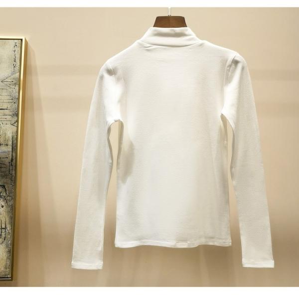 程よくボディにフィットするハイネックカットソー。