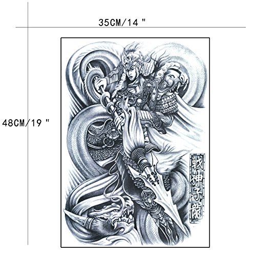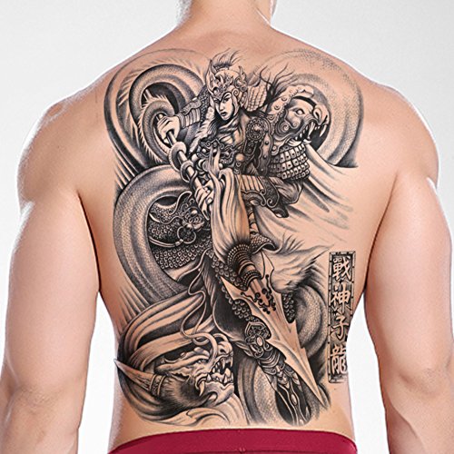 TAFLY Waterproof Temporary Tattoo Sticker Chinese Ancient Hero Men's Whole Back Large Water Transfer Fake Tattoo 2 Sheets