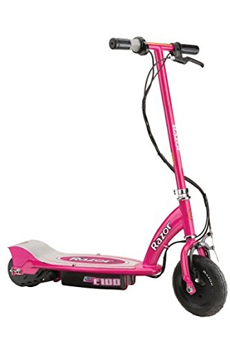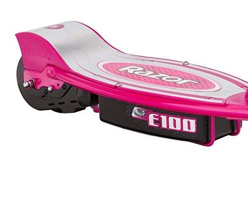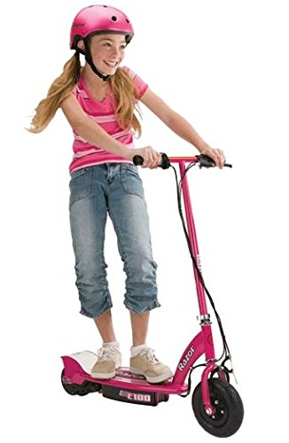 -. Brand : Razor -. Feature : Powerful fun at speeds of up to 10mph / Short charge time and long battery life / 24V system (two 12V sealed lead acid batteries) / Up to 40 minutes of continuous use / Battery charge time 4-6 hours -. IsAutographed : 0 -. IsMemorabilia : 0 -. MPN : 13111261 + 97783 -. PartNumber : 13111261 + 97783 -. ProductGroup : Sports -. ProductTypeName : OUTDOOR_RECREATION_PRODUCT -. Title : Razor E100 24V Motorized Electric Girls Scooter & Youth Sport Helmet - Pink