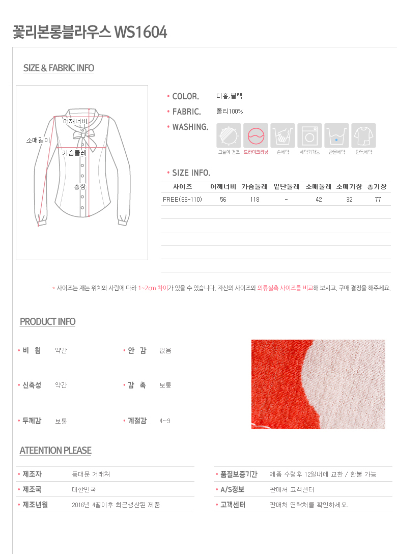 Big Size Flower Ribbon Long Blouse WS1604 A
