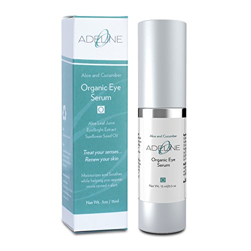 -. Title : Organic Eye Serum - with Cucumber, Chamomile, Sunflower, Oil, Aloe Vera, Vitamins A C E, Anti Aging, Reduce Dark Circles, Improve Collagen Production, Paraben Free, Natural, Made in USA by Adeline