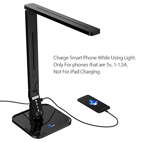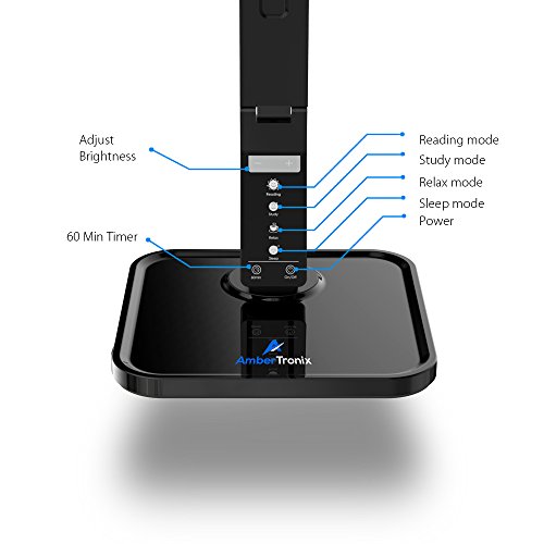 Ambertronix LED Desk Lamp AT-258-B Touch Control Panel, 1-Hour Auto Timer, 5V/1A USB Charging Port (Jet Black)