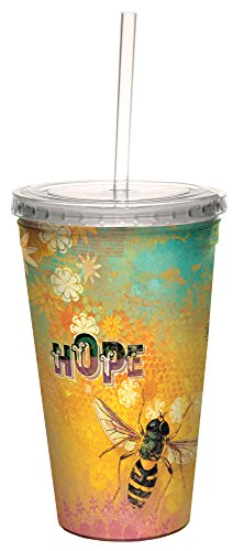 Tree-Free Greetings 35550 Angi and Silas Bee Hope Double-Walled Cool Cup with Reusable Straw, 16-Ounce