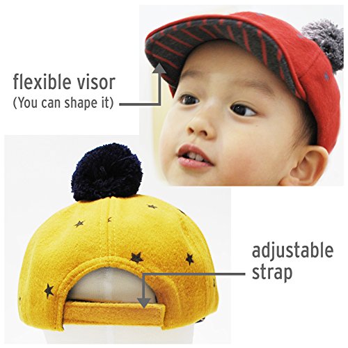 Adjustable strap with pom pom, flexible sizes to different ages of toddlers & kids
