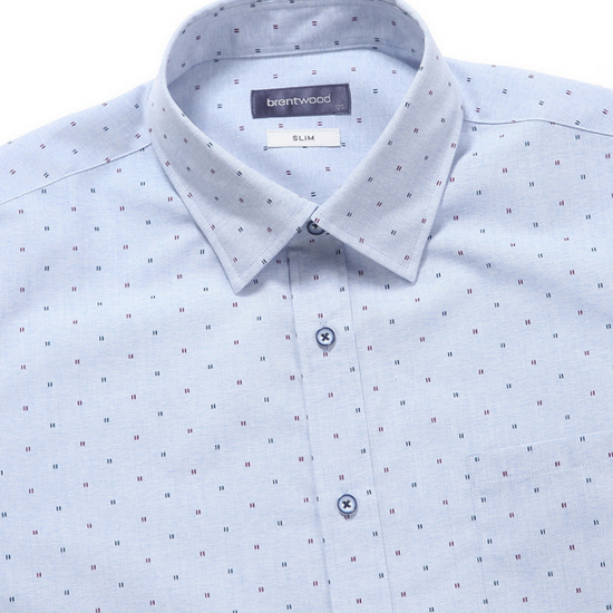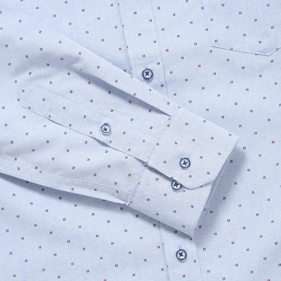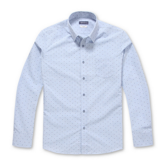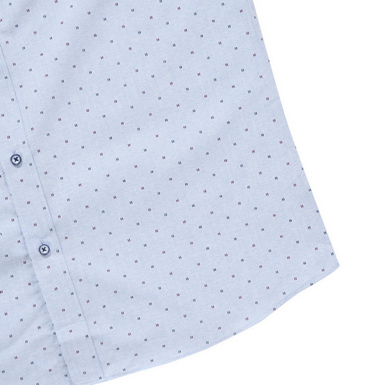 - 잔조직 디자인에 올오버 미니 프린트를 매치한 남성 셔츠.